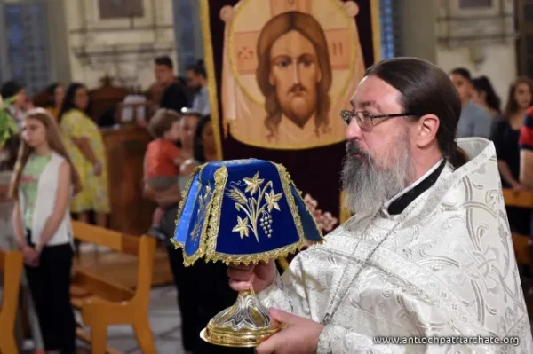 Της πανηγυρικής ιεράς αγρυπνίας που τελέστηκε προεξήρχε ο Πατριάρχης Αντιοχείας κ.κ. Ιωάννης. Συλλειτούργησαν Επίσκοποι του Πατριαρχείου καθώς και ο εκπρόσωπος του Πατριαρχείου Μόσχας τον οποίο ο Μακαριώτατος ευχαρίστησε για την παρουσία του.