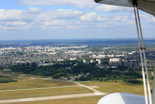 Ο κληρικός της γυναικείας μονής των Αγίων Μυροφόρων πρωθιερέας Αλεξάνδρ Λαβίτσκι ράντισε με αγιασμό τα κτίρια της αεροπορικής λέσχης και αεροσκάφη.