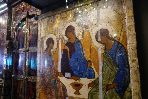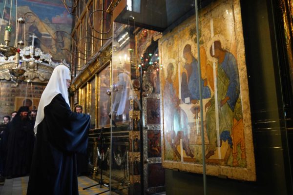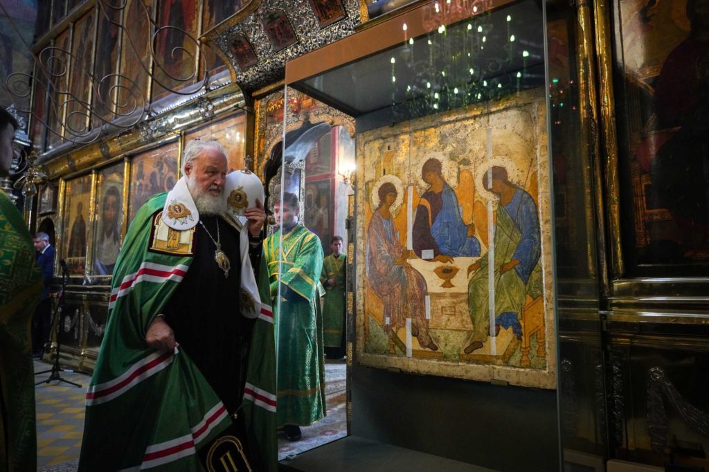 “Φέτος, κατόπιν αιτήματός μου προς τις αρχές, τη γιορτή μας κοσμεί η παρουσία στον ιερό αυτό ναό της θαυματουργής εικόνας της Αγίας Τριάδας, που φιλοτέχνησε ο Άγιος Αντρέι Ρουμπλιόφ. Αυτό είναι το μεγάλο ιερό του τόπου μας. Μας συνδέει με την εποχή του Αγίου Σεργίου, την εποχή ακριβώς που η Ρωσία μας, όντας σε μεγάλο κίνδυνο από εξωτερικούς και εσωτερικούς εχθρούς, συγκεντρώθηκε για να γίνει, με τη χάρη του Θεού, μια μεγάλη δύναμη στο μέλλον”, ανέφερε στην αρχή της ομιλία του ο Μακαριώτατος.