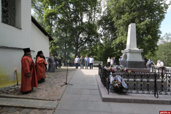 Επιμνημόσυνη δέηση στο μνημείο του Πούσκιν στο Πσκοφ