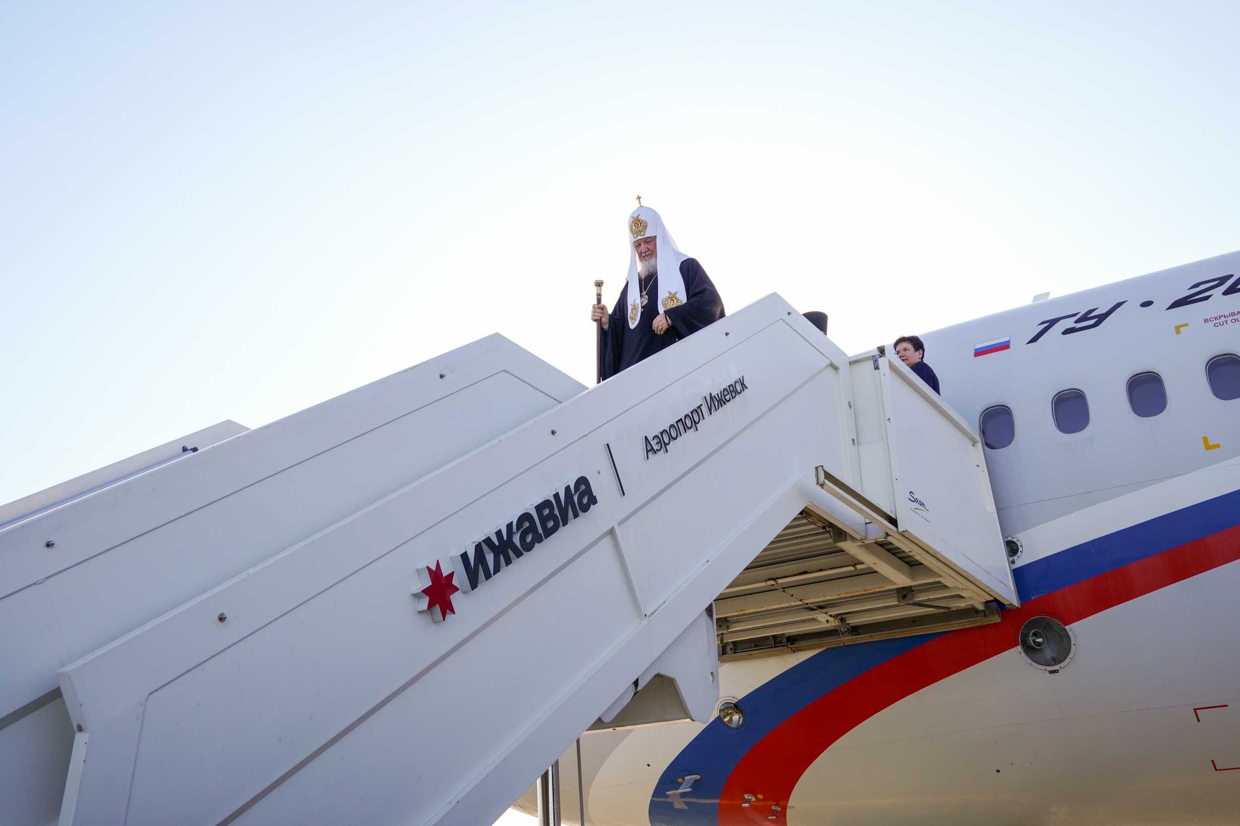 Στο αεροδρόμιο του Ιζέβσκ τον Μακαριώτατο Πατριάρχη Κύριλλο υποδέχθηκαν ο επικεφαλής της Δημοκρατίας των Ουντμούρτ κ. Brechalov και ο Σεβασμιώτατος Μητροπολίτης Ιζέβσκ και Ουδμούρτιας κ. Βικτωρίνος.