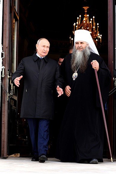 Στη συνέχεια και στο πλαίσιο του ταξιδιού του στην Περιφέρεια Νίζνι Νοβγκορόντ, ο Βλαντιμίρ Πούτιν επισκέφθηκε επίσης την Ιερά Μονή Αγίας Τριάδος και Αγίου Σεραφείμ του Σάρωφ.