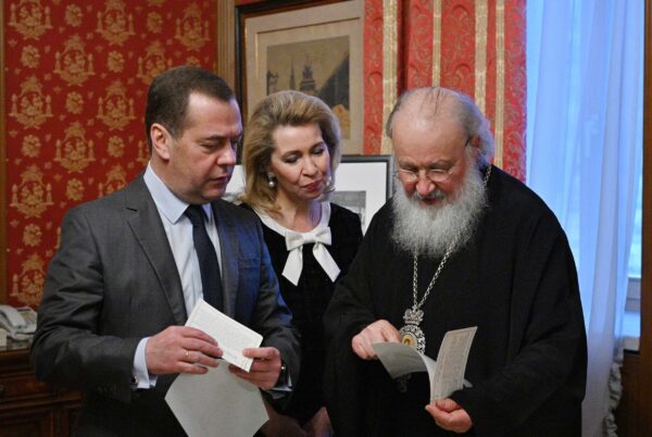 Μετά το πέρας της Θείας Λειτουργίας ο Πατριάρχης κ.κ. Κύριλλος δέχτηκε ευχές από την πολιτική, στρατιωτική και πνευματική ηγεσία της Ρωσίας.