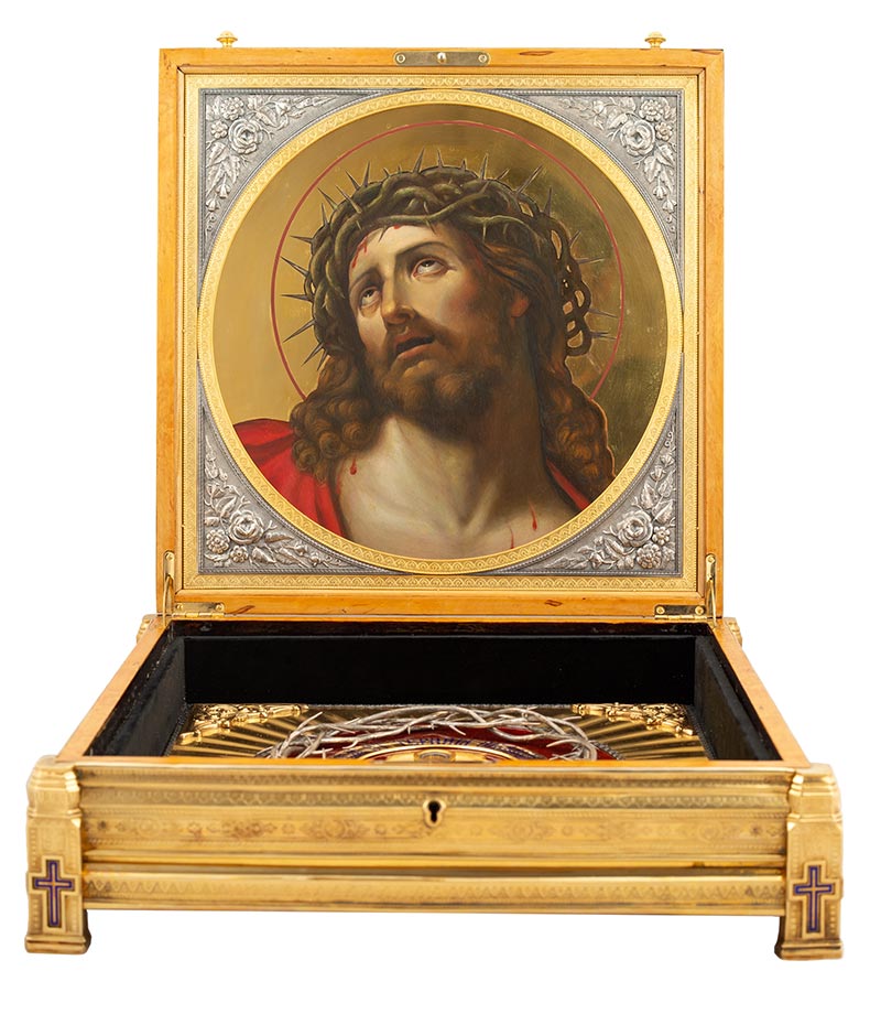 Αυτό το στεφάνι φυλάσσεται σε μία γυάλινη λειψανοθήκη από κρύσταλλο που έχει τη μορφή κυκλικού στεφανιού, φυλάσσεται στο βάθος του ναού και δεν είναι άμεσα ορατό στους επισκέπτες.