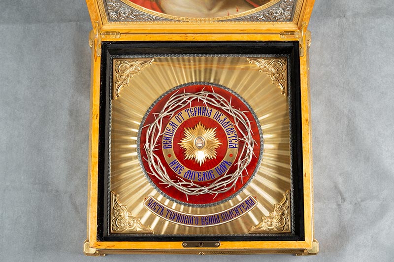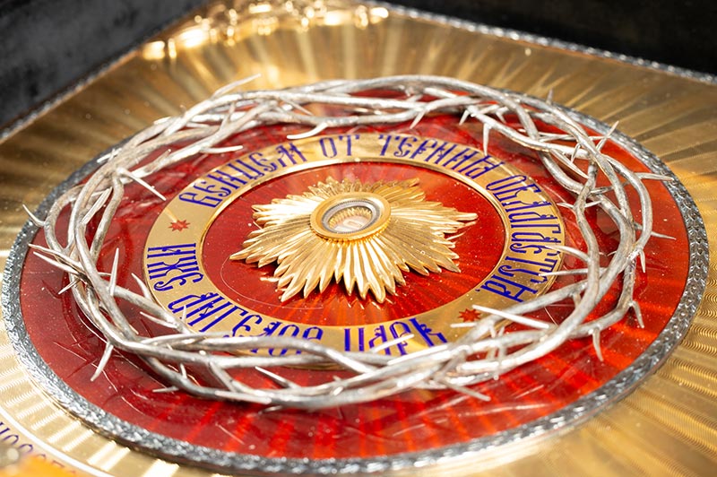 Με την ευλογία του Σεβ. Μητροπολίτου Αστανάς και Καζακστάν κ. Αλεξάνδρου, φιλοτεχνήθηκε ειδική λειψανοθήκη με σκοπό την τοποθέτηση τεμαχίου του Ακανθίνου Στεφάνου του Χριστού, που θα φυλάσσεται στον Ιερό Καθεδρικό Ναό της Αναλήψεως του Αλμάτι.