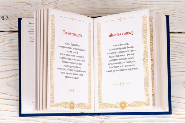 Όλα τα κείμενα στο προσευχητάρι είναι στην Καζακική γλώσσα με παράλληλη μετάφραση στα Ρωσικά, είναι εικονογραφημένο με φωτογραφίες των εικόνων που κοσμούν τους ναούς του Καζακστάν και τις οποίες αγιογράφησε ο S.N. Σοκόλοφ.