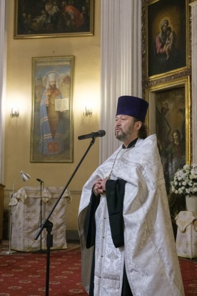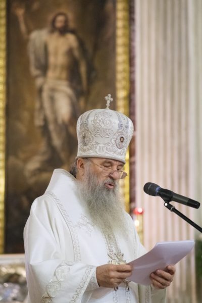 Ο Μητροπολίτης Αγίας Πετρούπολης και Λάντογκας κ. Βαρσανούφιος ανέγνωσε το κείμενο των Πατριαρχικών συλλυπητηρίων για την εκδημία του μακαριστού Μητροπολίτη και υπενθύμισε στους παρευρισκόμενους ορόσημα από τη ζωή του εκλιπόντος.