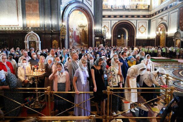 Τη μεγάλη Δεσποτική εορτή της Μεταμορφώσεως του Σωτήρος τίμησαν χθες στον Καθεδρικό Ναό του Σωτήρος Χριστού στη Μόσχα