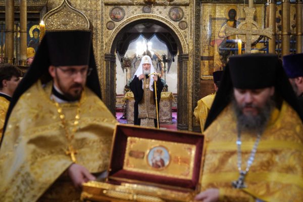 Μεταφέρθηκε λάρνακα με τμήμα ιερών λειψάνων του Αγίου Ισαποστόλου Μεγάλου Πρίγκιπα Βλαδιμήρου από τον Ιερό Καθεδρικό Ναό του Σωτήρος Χριστού Μόσχας στον Ιερό Ναό της Κοιμήσεως της Θεοτόκο.
