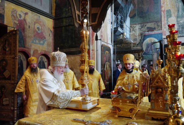 Ο Μακαριώτατος Πατριάρχης Μόσχας και πασών των Ρωσιών κ.κ. Κύριλλος τέλεσε τη Θεία Λειτουργία στον Ιερό Πατριαρχικό Ναό της Κοιμήσεως της Θεοτόκου στο Κρεμλίνο της Μόσχας στις 28 Ιουλίου, ημέρα μνήμης του Αγίου Ισαποστόλου Μεγάλου Πρίγκιπα Βλαδιμήρου και ημέρα των εκκλησιαστικών και κρατικών εορτασμών για τη Βάπτιση της Γης των Ρως.