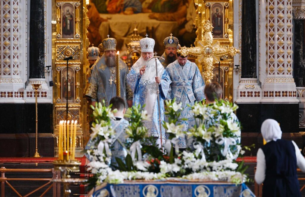 Στον Καθεδρικό Ναό του Σωτήρος Χριστού στη Μόσχα εόρτασαν χθες την Κοίμηση της Θεοτόκου στη Μόσχα.