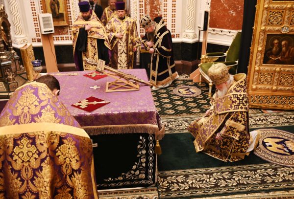 Ο Μακαριώτατος Πατριάρχης Μόσχας και πασών των Ρωσιών κ.κ. Κύριλλος συμπαραστατούμενος από Αρχιερείς της Ρωσικής Εκκλησίας προεξήρχε στην τελετή της Σταυροπροσκυνήσεως.
