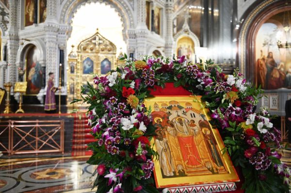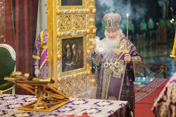 Της ιεράς αγρυπνίας προεξήρχε ο Πατριάρχης Μόσχας και πασών των Ρωσιών κ.κ. Κύριλλος με τη συμμετοχή κληρικών και διακόνων του ναού.
