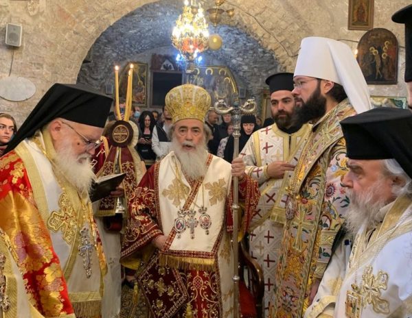 Στην Πανηγυρική Θεία Λειτουργία προεξήρχε ο Πατριάρχης Ιεροσολύμων κ.κ. Θεόφιλος συλλειτουργούντων Αγιοταφιτών Αρχιερέων καθώς και του Μητροπολίτη Βολοκολάμσκ κ. Αντωνίου, Προέδρου του Τμήματος Εξωτερικών Εκκλησιαστικών Σχέσεων του Πατριαρχείου Μόσχας.