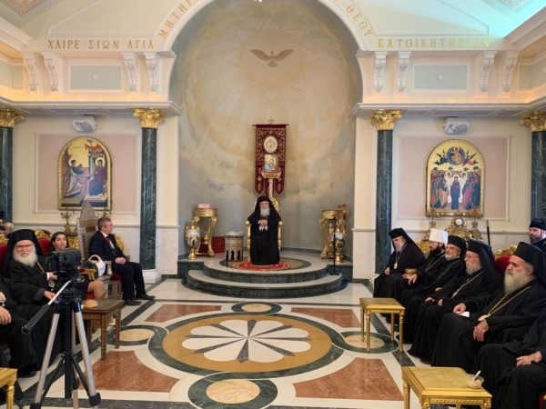 Μετά τη Θεία Λειτουργία, εν πομπή προεξάρχοντος του Μακαριωτάτου και ψάλλοντας το τροπάρια στον Απόστολο Ιάκωβο, οι συμμετέχοντες στην πανήγυρη μετέβησαν στην αίθουσα του θρόνου του Πατριαρχείου Ιεροσολύμων.