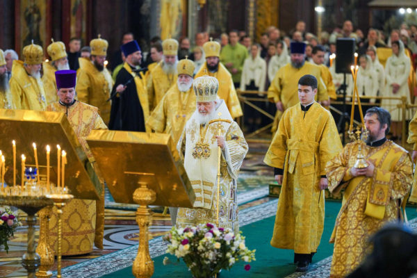Στην Ευχαριστιακή Σύναξη, που μεταδόθηκε απευθείας από τα τηλεοπτικά δίκτυα «Σογιούζ» και «Σπας» καθώς και από την επίσημη ιστοσελίδα της Ρωσικής Ορθοδόξου Εκκλησίας Patriarchia.ru, παρέστησαν πολιτειακοί και πολιτικοί άρχοντες.