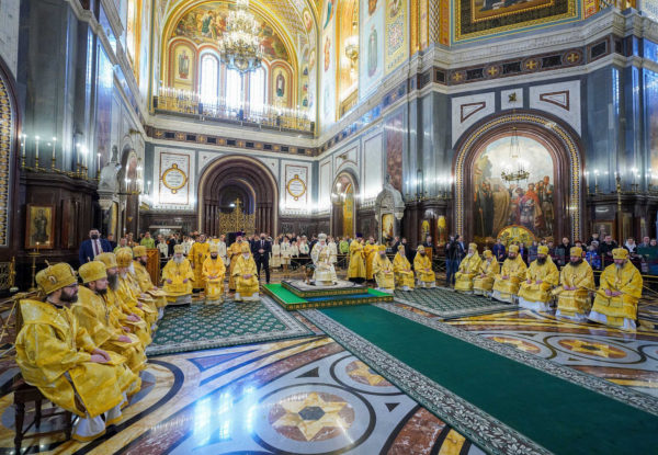 Στην Ευχαριστιακή Σύναξη, που μεταδόθηκε απευθείας από τα τηλεοπτικά δίκτυα «Σογιούζ» και «Σπας» καθώς και από την επίσημη ιστοσελίδα της Ρωσικής Ορθοδόξου Εκκλησίας Patriarchia.ru, παρέστησαν πολιτειακοί και πολιτικοί άρχοντες.