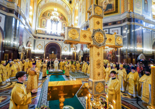 Ο Πατριάρχης Μόσχας και πασών των Ρωσιών κ.κ. Κύριλλος τέλεσε τη Θεία Λειτουργία στον ιερό καθεδρικό ναό του Σωτήρος Χριστού την Κυριακή της Ορθοδοξίας, 5 Μαρτίου.