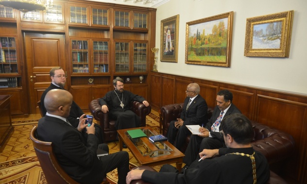 Ο Μητροπολίτης Ιλαρίων καλωσόρισε θερμά τον νέο επικεφαλής της Αιθιοπικής διπλωματικής αποστολής στη Μόσχα.