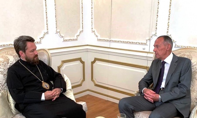 Με τον πρέσβη της Ρωσικής Ομοσπονδίας στην Ελλάδα Αλεξάντερ Μασλόφ, συναντήθηκε χθες, 26 Ιουνίου, ο Μητροπολίτης Βολοκολάμσκ κ. Ιλαρίων, ο οποίος πραγματοποιεί περιοδεία στην Ελλάδα στο πλαίσιο της στρατηγικής του Πατριαρχείου της Μόσχας για τις επαφές σχετικά με το ζήτημα της αυτοκεφαλίας στην Ουκρανία.