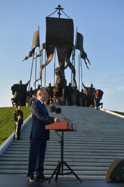 Παρουσία του Μακαριωτάτου Πατριάρχη Μόσχας και πασών των Ρωσιών κ.κ. Κυρίλλου και του Προέδρου της Ρωσίας Βλαντιμίρ Πούτιν τελέστηκαν τα αποκαλυπτήρια μνημείου αφιερωμένου στον Άγιο Αλέξανδρο Νιέφσκι στην περιοχή του Πσκοφ το Σάββατο 11 Σεπτεμβρίου 2021.