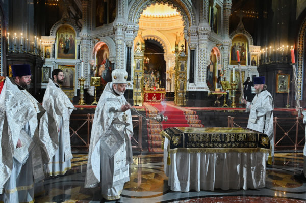 Την Ακολουθία της Παννυχίδος και την Θεία Λειτουργία της Κυριακής του Πάσχα τέλεσε χθες το βράδυ (1ης προς 2ας Μαΐου 2021), στον Καθεδρικό Ναό του Χριστού Σωτήρος στη Μόσχα, ο Μακαριώτατος Πατριάρχης Μόσχας και Πασών των Ρωσιών κ.κ. Κύριλλος.