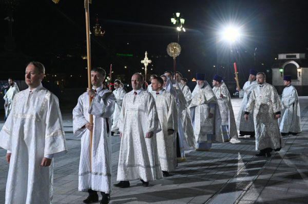 Σύμφωνα με την παράδοση, πριν την έναρξη της Πασχαλινής Ακολουθίας, κάθε φορά στρέφω σε σας από το βωμό του καθεδρικού ναού του Χριστού Σωτήρος. Όταν μίλησα πέρυσι, είπα ότι ο λόγος μου ακούγεται σε μια εκκλησία στην οποία δεν υπάρχουν άνθρωποι – η σιωπή ήταν αδιάψευστος μάρτυρας σε αυτό, μια τόσο ασυνήθιστη σιωπή στην εκκλησία, όπου υποτίθεται ότι πρέπει να τελείται η αναστάσιμη ακολουθία. Και ξέρουμε γιατί ήταν έτσι: μια επιδημία, μια τρομερή μόλυνση, σε μεγάλο βαθμό παρέλυσε τη ζωή των ανθρώπων, και αυτό επηρέασε, μεταξύ άλλων, τη θρησκευτική και λειτουργική ζωή των πιστών.