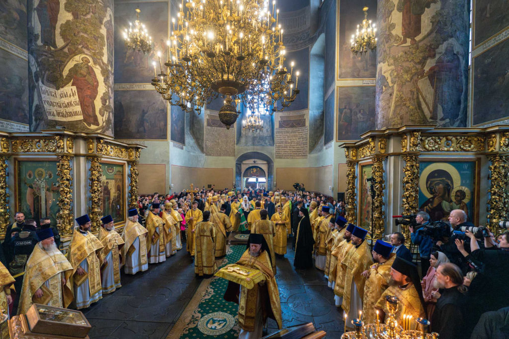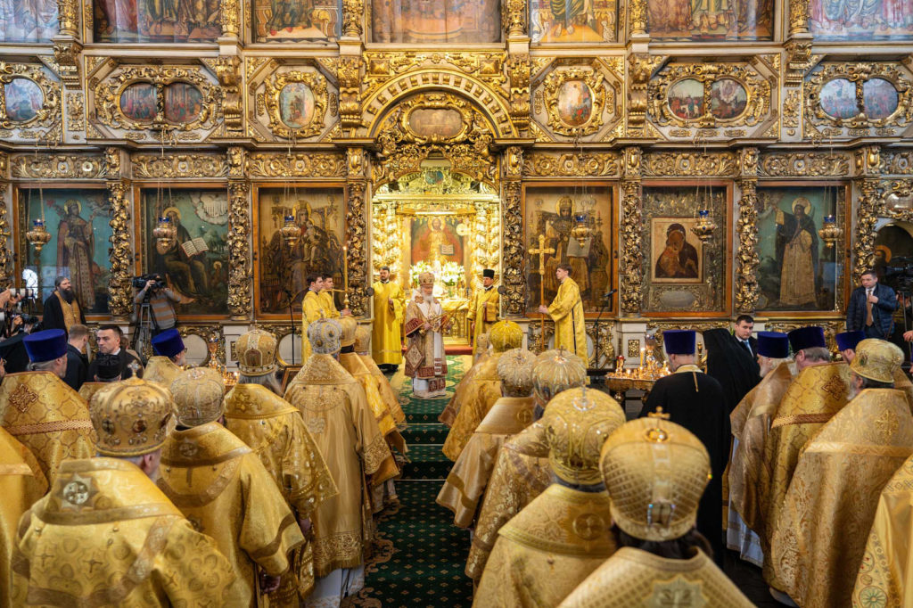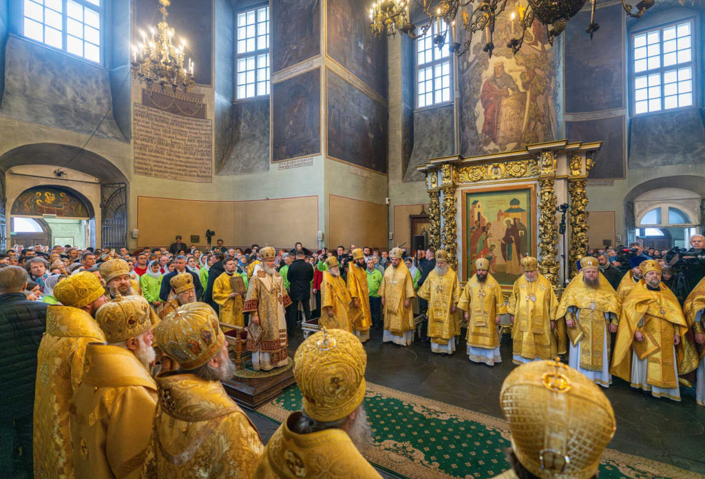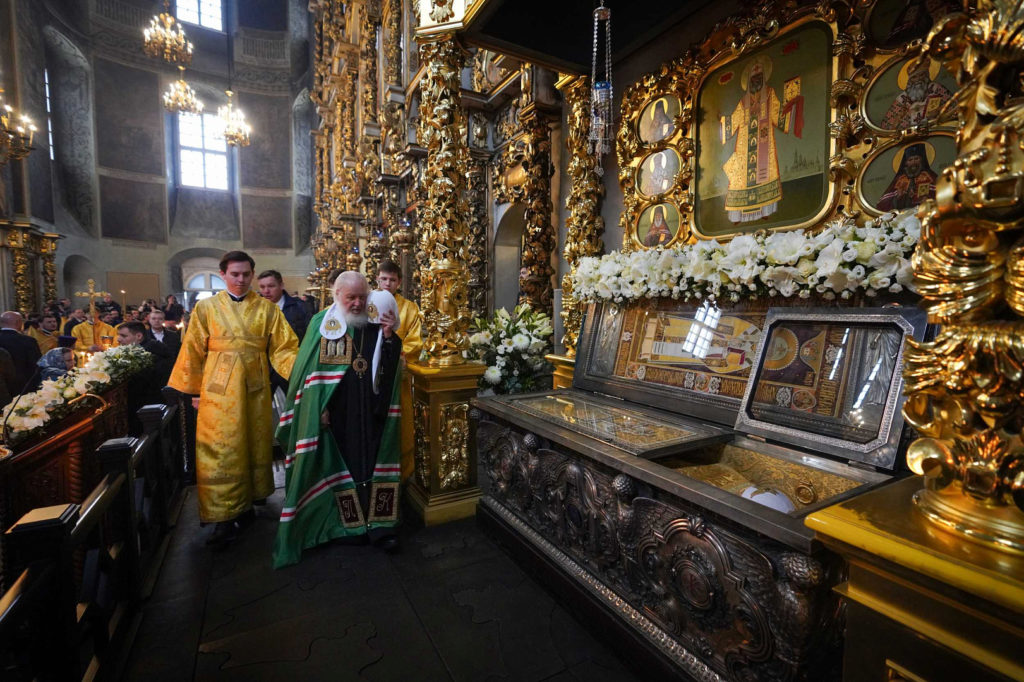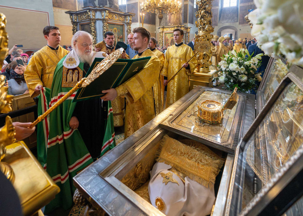 Στο Μεγάλο Καθολικό της μονής ο Προκαθήμενος της Ρωσικής Ορθοδόξου Εκκλησίας ασπάσθηκε τα τίμια λείψανα του Αγίου Τύχωνα και στη συνέχεια τέλεσε τη Θεία Λειτουργία του Αγίου Βασιλείου του Μεγάλου πλαισιούμενος από πλειάδα ιεραρχών και κληρικών της Ρωσικής Ορθοδόξου Εκκλησίας, καθώς και εκπροσώπους των κατά τόπους Ορθοδόξων Εκκλησιών.