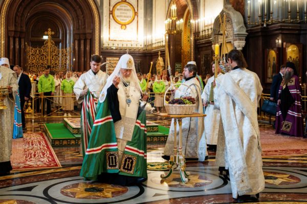 Των ιερών ακολουθιών προέστη ο Πατριάρχης Μόσχας και πασών των Ρωσιών κ.κ. Κύριλλος. Κατά τη Θεία Λειτουργία τελέστηκε η χειροτονία του Επισκόπου Μπρονίτσκι κ. Θεογνώστου. Μετά το πέρας της Θείας Λειτουργίας Προκαθήμενος της Ρωσικής Εκκλησίας ευλόγησε τους καρπούς της νέας σοδειάς, ως είθιστε κατά την ημέρα αυτή.
