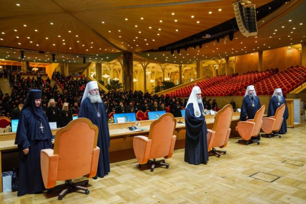 Στη συνέχεια στην αίθουσα Εκκλησιαστικών Συμβουλίων του Καθεδρικού Ναού ο Προκαθήμενος της Ρωσικής Εκκλησίας κήρυξε με την εναρκτήρια ομιλία του την έναρξη της Σύναξης.