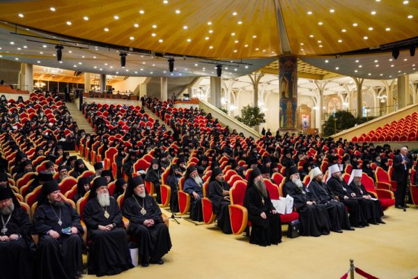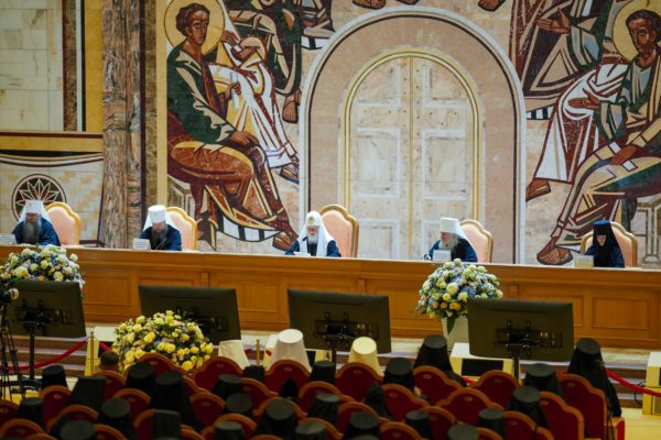 Στη συνέχεια στην αίθουσα Εκκλησιαστικών Συμβουλίων του Καθεδρικού Ναού ο Προκαθήμενος της Ρωσικής Εκκλησίας κήρυξε με την εναρκτήρια ομιλία του την έναρξη της Σύναξης.