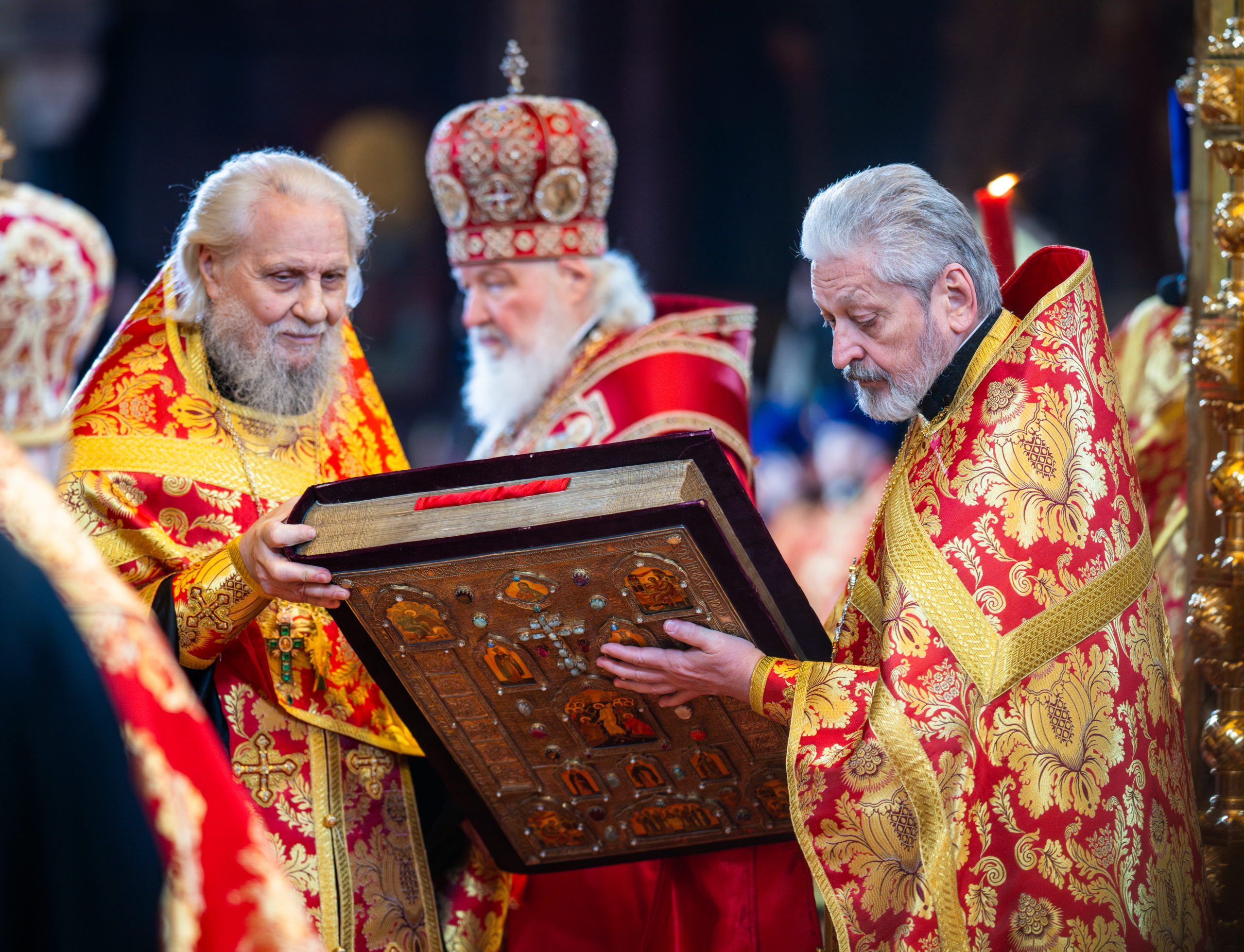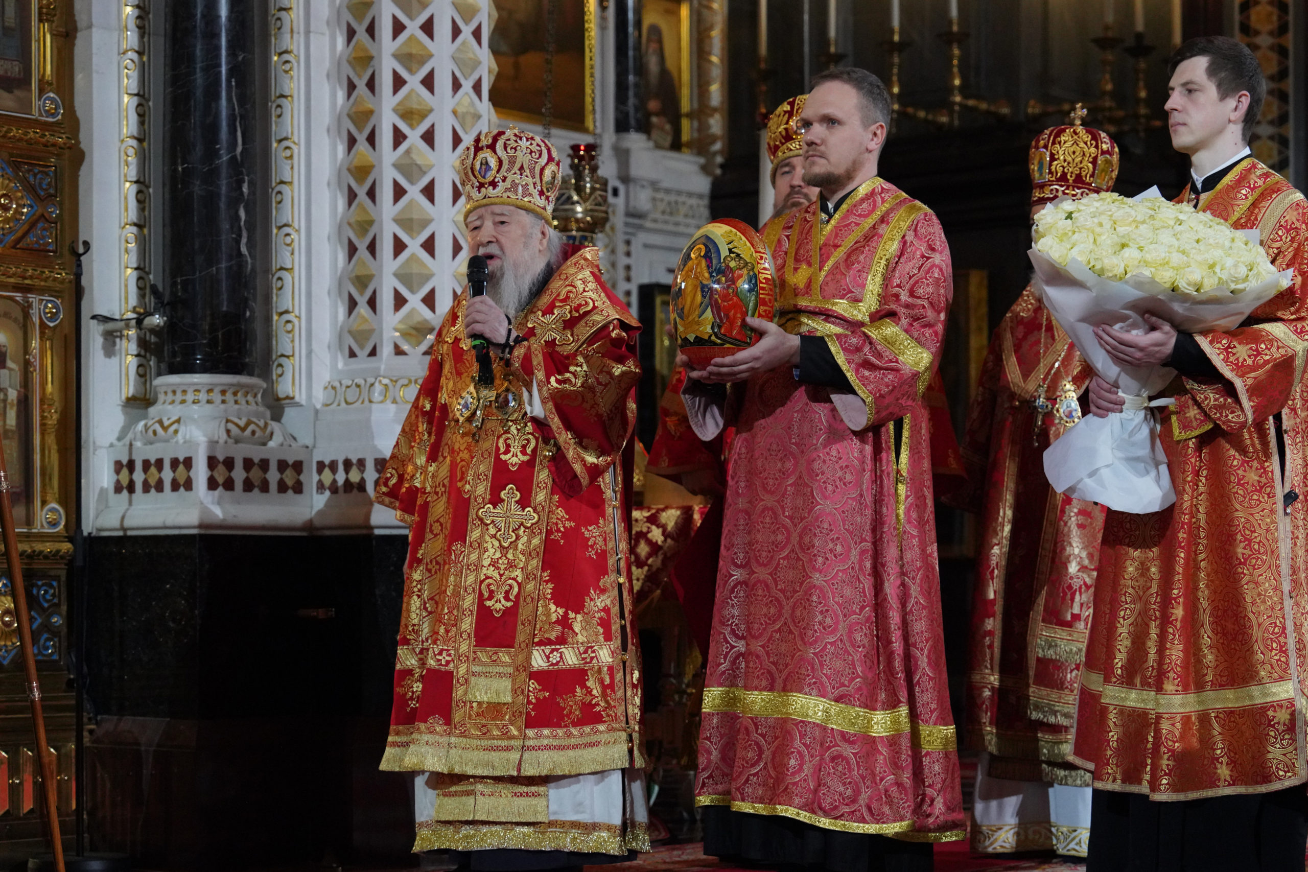 Στο τέλος του Εσπερινού της Αγάπης, ο Μητροπολίτης Γιουβενάλι, εκ μέρους των συμμετεχόντων στην ακολουθία και ολόκληρης της Εκκλησίας της Μόσχας, ευχήθηκε στον Μακαριώτατο Πατριάρχη Κύριλλο για την Ανάσταση του Χριστού.
