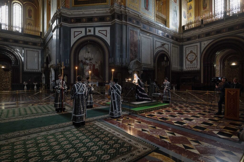 Στην ακολουθία του Όρθρου, στην οποία διαβάστηκε ο Μέγας Κανόνας, στον Καθεδρικό Ναό του Σωτήρος Χριστού στη Μόσχα, χοροστάτησε χθες, Τετάρτη 1 Απριλίου, ο Πατριάρχης Μόσχας και πασών των Ρωσιών κ.κ. Κύριλλος.