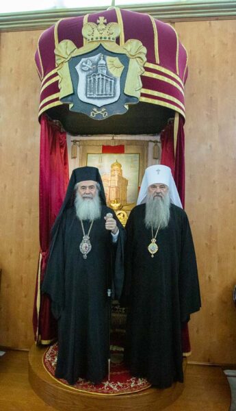Στις 19 Σεπτεμβρίου, στη μικρή αίθουσα υποδοχής στο Πατριαρχείο Ιεροσολύμων, ο Μακαριώτατος Πατριάρχης Ιεροσολύμων κ.κ. Θεόφιλος Γ’ υποδέχτηκε τον Μητροπολίτη Αγίας Πετρούπολης και Λάντογκα κ. Βαρσονούφιο.