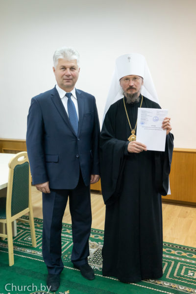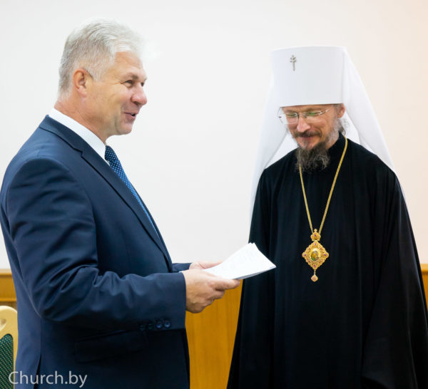 Τη νέα έκδοση του Καταστατικού Χάρτη της Ορθόδοξης Εκκλησίας της Λευκορωσίας, όπως αυτός τροποποιήθηκε από τη Σύνοδο της Εξαρχίας της Λευκορωσίας και εγκρίθηκε από την Ιερά Σύνοδο του Πατριαρχείου Μόσχας, παρέδωσε στον Μητροπολίτη Μίνσκ και Ζασλάβ και Πατριαρχικό Έξαρχο πάσης Λευκορωσίας κ. Βενιαμίν ο Επίτροπος Θρησκευτικών και Εθνικών Υποθέσεων της χώρας, Αλεξάντερ Ρούμακ.