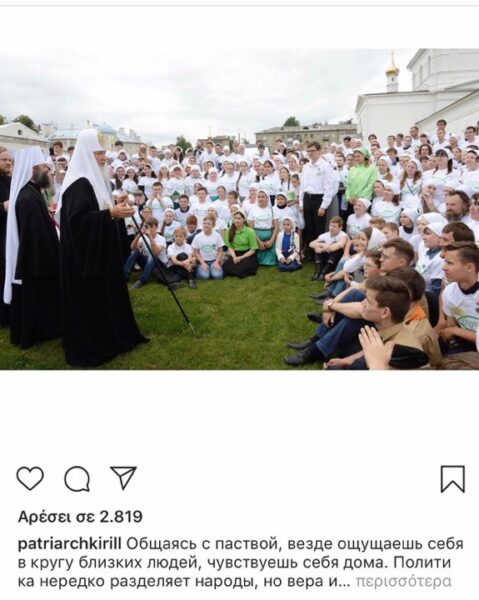 16/08/2019 16/08/2019 Το Πατριαρχείο Μόσχας αποφάσισε να εκμεταλλευτεί τα κοινωνικά μέσα δικτύωσης προκειμένου να προσεγγίσει περισσότερους πιστούς αλλά κυρίως να προσεγγίσει νέους που είναι και οι πιο δεινοί χρήστες των ψηφιακών μέσων. Έτσι με μεγάλη συχνότητα φωτογραφίες του Πατριάρχη Μόσχας από το αρχείο του αλλά και την επικαιρότητα ανεβαίνουν κυρίως στο ίνσταγκραμ με αποσπάσματα από ομιλίες του,...