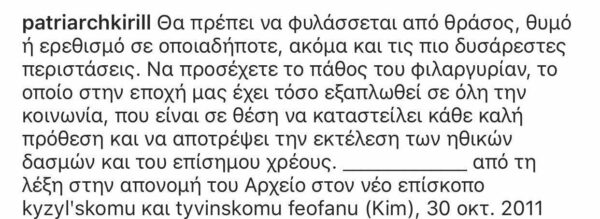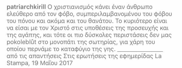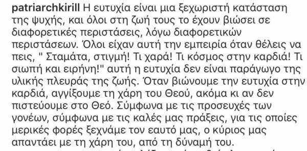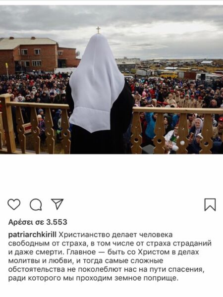 Έτσι με μεγάλη συχνότητα φωτογραφίες του Πατριάρχη Μόσχας από το αρχείο του αλλά και την επικαιρότητα ανεβαίνουν κυρίως στο ίνσταγκραμ με αποσπάσματα από ομιλίες του, δηλώσεις του και συνεντεύξεις του.