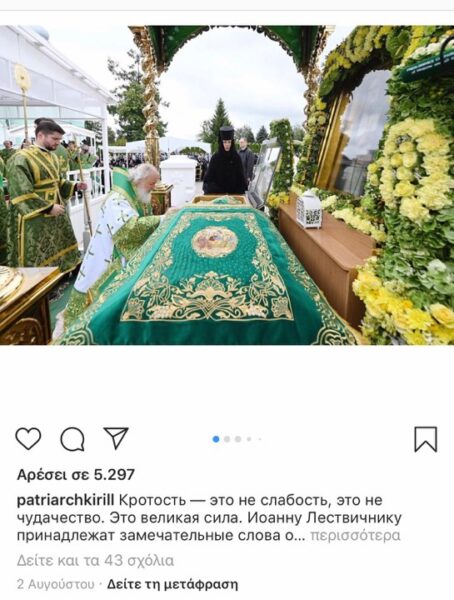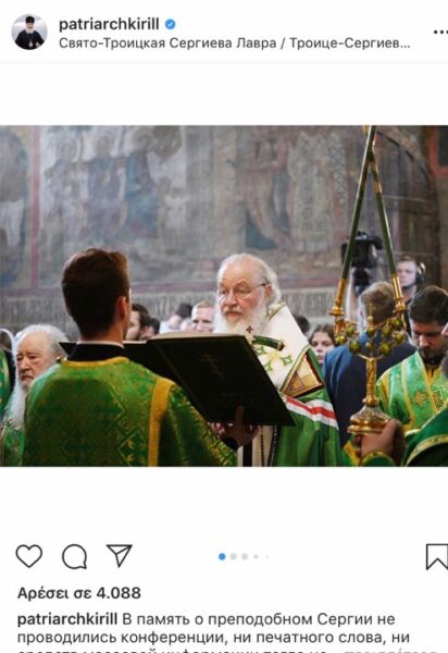 Έτσι με μεγάλη συχνότητα φωτογραφίες του Πατριάρχη Μόσχας από το αρχείο του αλλά και την επικαιρότητα ανεβαίνουν κυρίως στο ίνσταγκραμ με αποσπάσματα από ομιλίες του, δηλώσεις του και συνεντεύξεις του.