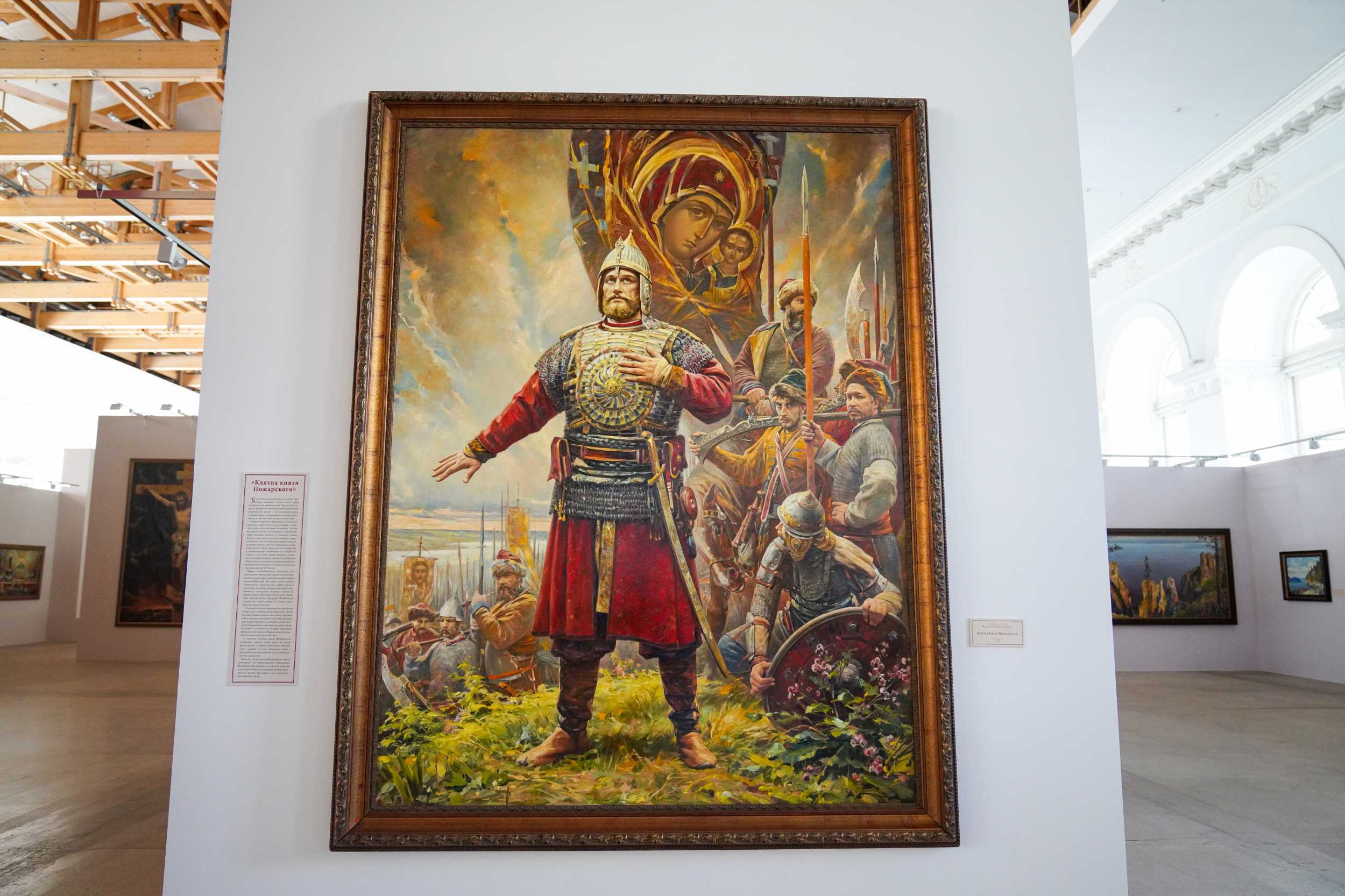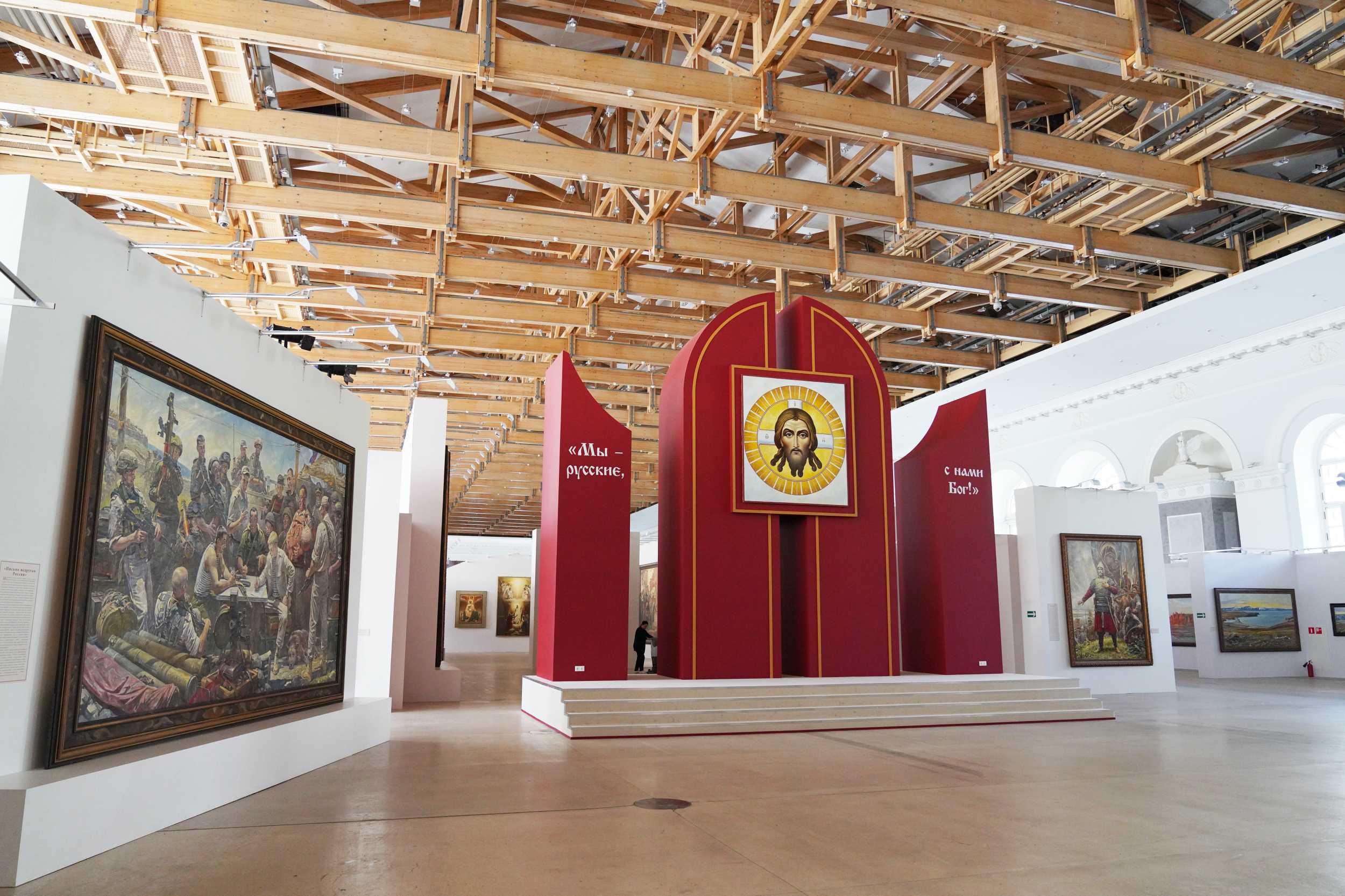 Η επιθεώρηση της έκθεσης ξεκίνησε με πίνακες που δημιουργήθηκαν ως αποτέλεσμα του δημιουργικού ταξιδιού του καλλιτέχνη στις πόλεις της Λαϊκής Δημοκρατίας του Λουγκάνσκ – Λουγκάνσκ, Νοβοαχτύρκα και Σεβεροντόνετσκ. Στον Πατριάρχη Κύριλλο παρουσιάστηκε ο πίνακας «Υπερασπιστές της Νοβοροσίγια» και καμβάδες αφιερωμένοι στην Ειδική Στρατιωτική Επιχείρηση.
