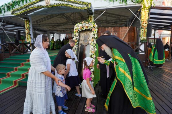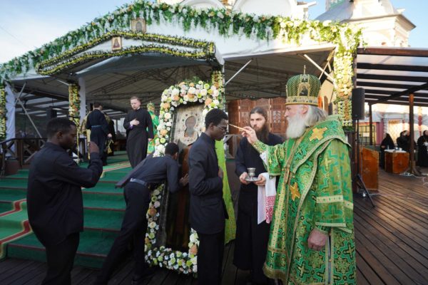 Κατά την άφιξη του στη Μονή ο Προκαθήμενος της Ρωσικής Εκκλησίας προσκύνησε τα σεβάσμια λείψανα του Αγίου Σεργίου του Ραντονέζ καθώς και την εικόνα της Αγίας Τριάδος που φιλοτέχνησε ο Άγιος Αντρέι Ρουμπλιόφ, καθώς και ιερά λείψανα τα οποία φυλάσσονται στη Μονή.