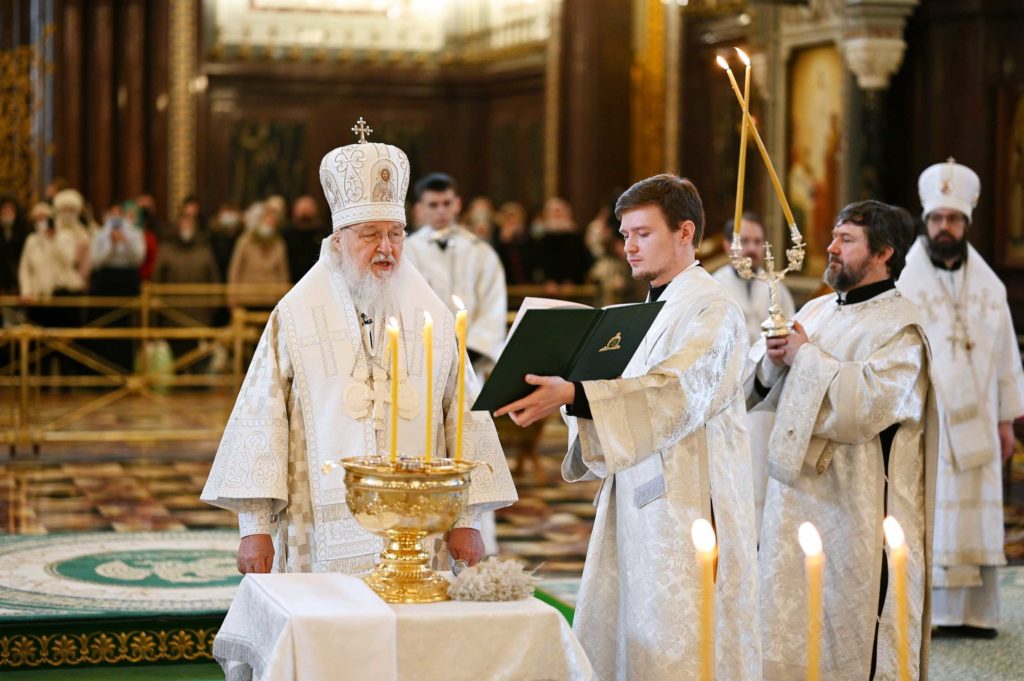 Κατά τη διάρκεια της Θείας λειτουργίας ο Προκαθήμενος της Εκκλησίας της Ρωσίας ανέγνωσε ειδική δέηση για την κατάπαυση της πανδημίας του κορωνοϊού.