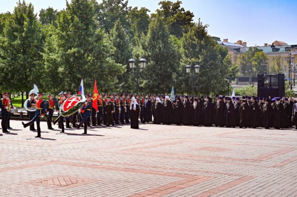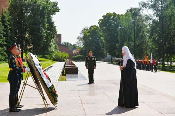 “Μία εκπληκτική εθνική ενότητα αναπτύχθηκε στη Ρωσία κατά τη διάρκεια του Μεγάλου Πατριωτικού Πολέμου ενώ το κατόρθωμα των πιστών αλλά και των μη πιστών το ευλόγησε η Ρωσική Ορθόδοξη Εκκλησία” τόνισε ο Πατριάρχης Μόσχας και πασών των Ρωσιών κ.κ. Κύριλλος μετά την κατάθεση στεφάνου στο μνημείο του Αγνώστου Στρατιώτη στον κήπο του Αλεξάνδρου για την ημέρα μνήμης της Επετείου 80 ετών από την έναρξη του Μεγάλου Πατριωτικού Πολέμου.