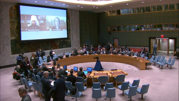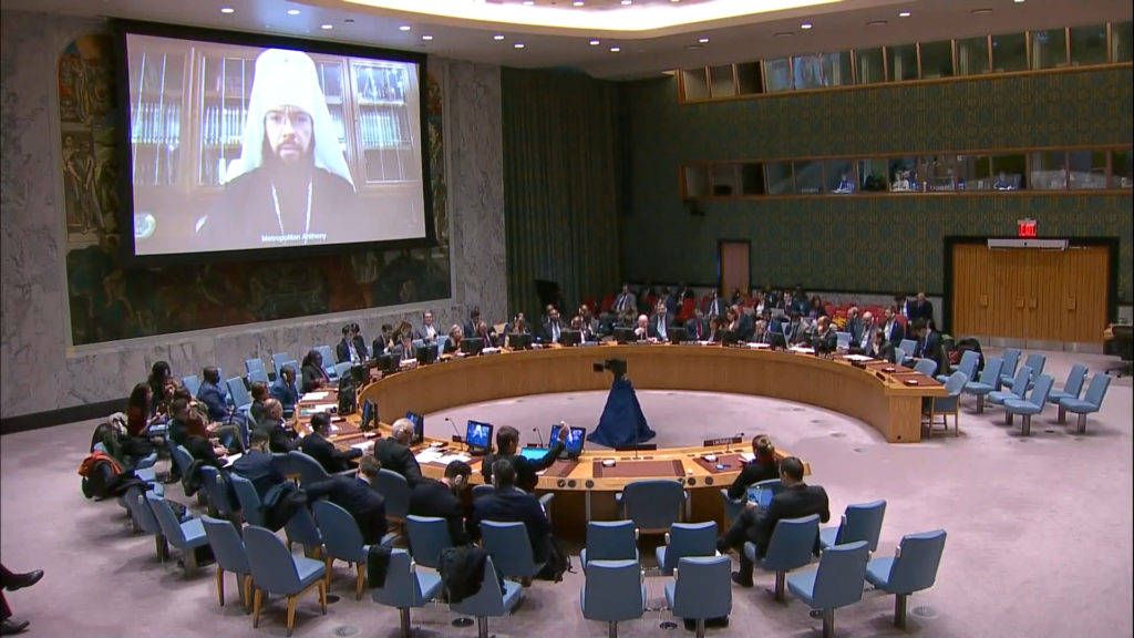 Για την Ουκρανία και η προστασία των πιστών και των χώρων λατρείας στη χώρα που για σχεδόν ένα χρόνο ο πόλεμος μαίνεται μετά τη ρωσική εισβολή, μίλησε χθες σε συνεδρίαση του Συμβουλίου Ασφαλείας των Ηνωμένων Εθνών ο Μητροπολίτης Βολοκολάμσκ κ. Αντώνιος, Πρόεδρος του Τμήματος Εξωτερικών Εκκλησιαστικών Σχέσεων του Πατριαρχείου Μόσχας.