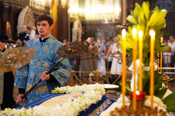 Μάλιστα, στην Αγρυπνία για τα προεόρτια της Κοίμησης (που περιελάμβανε πανηγυρικό εσπερινό, Θεία Λειτουργία, εγκώμια ή αλλιώς τον επιτάφιο της Θεοτόκου) παρέστη ο Πρόεδρος του Φιλελεύθερου Δημοκρατικού Κόμματος της Ρωσίας L.E. Σλούτσκι.