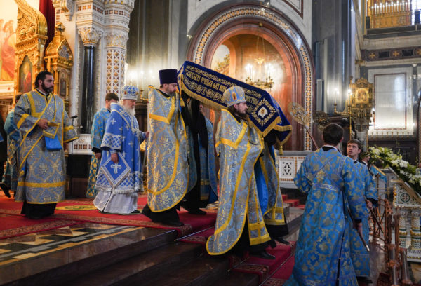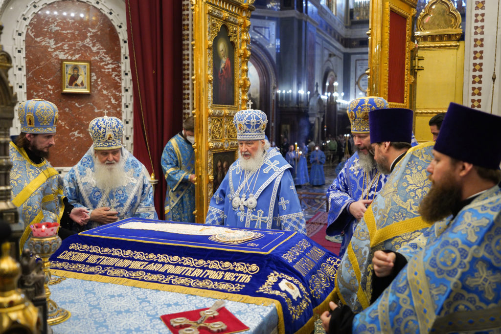 Ιερά Αγρυπνία στον Καθεδρικό Ναό του Σωτήρος Χριστού στη Μόσχα τέλεσε ο Μακαριώτατος Πατριάρχης Μόσχας κ.κ. Κύριλλος στις 27 Αυγούστου 2022, παραμονή της εορτής της Κοιμήσεως της Υπεραγίας Θεοτόκου (με το παλαιό ημερολόγιο).