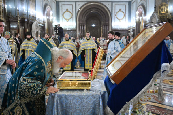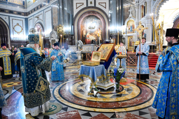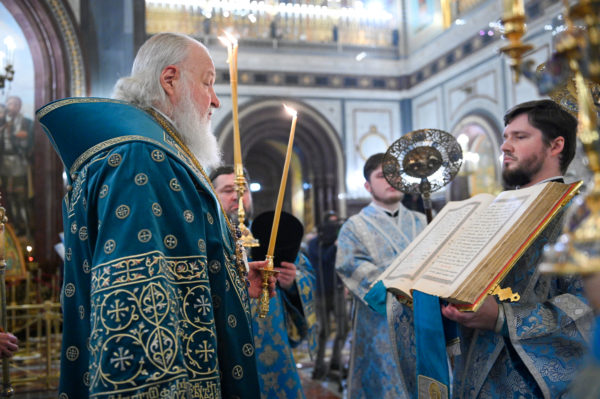 Αγρυπνία επί τη εορτή της Αγίας Σκέπης (με το παλαιό ημερολόγιο που ακολουθείται στη Ρωσία) τέλεσε χθες, 13 Οκτωβρίου 2021, ο Μακαριώτατος Πατριάρχης Μόσχας και πασών των Ρωσιών κ.κ. Κύριλλος στον Καθεδρικό Ναό του Χριστού Σωτήρος στη Μόσχα.