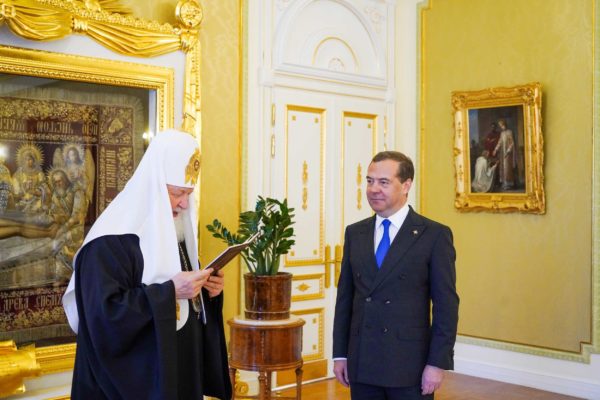 Το παράσημο Β’ Βαθμού του Τάγματος του Αγίου Σεργίου Ραντονέζ απένειμε ο Πατριάρχης Μόσχας κ.κ. Κύριλλος στον Ντμίτρι Μεντβέντεφ, Αντιπρόεδρο του Συμβουλίου Ασφαλείας και πρώην Πρόεδρο και Πρωθυπουργό της Ρωσικής Ομοσπονδίας, σε ειδική εκδήλωση στην Πατριαρχική Κατοικία.