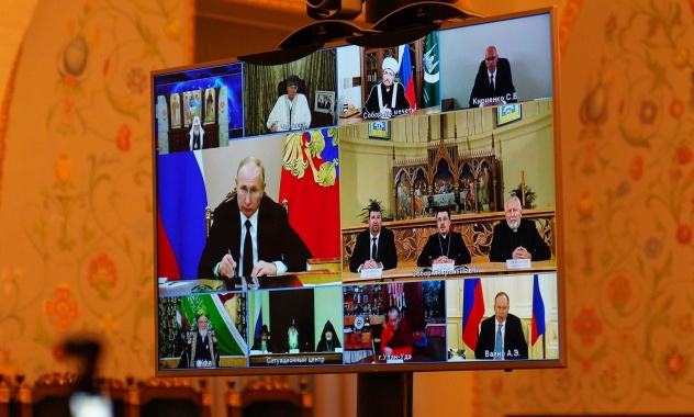 Μέσω τηλεδιάσκεψης πραγματοποιήθηκε φέτος η παραδοσιακή συνάντηση του Προέδρου της Ρωσικής Ομοσπονδίας Βλαντιμίρ Πούτιν με τον Πατριάρχη Μόσχας και Πασών των Ρωσιών κ.κ. Κύριλλο και τους επικεφαλής των θρησκευτικών οργανισμών της Ρωσίας, με αφορμή τον εορτασμό της Ημέρας Εθνικής Ενότητας.
