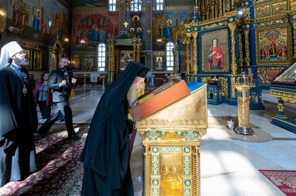 Επίσκεψη στον Ιερό Καθεδρικό Ναό Κοιμήσεως της Θεοτόκου της πρωτεύουσας του Καζακστάν Νουρ-Σουλτάν, πραγματοποίησαν ο Μακαριώτατος Πατριάρχης Ιεροσολύμων κ.κ. Θεόφιλος Γ’ και αντιπροσωπεία του Πατριαρχείου Μόσχας την Τετάρτη 14 Σεπτεμβρίου 2022, στο περιθώριο της συμμετοχής τους στο 7ο Συνέδριο Ηγετών Παγκοσμίων και Παραδοσιακών Θρησκειών που διεξήχθη στη χώρα και κατόπιν πρόσκλησης του Μητροπολίτη Αστανάς και Καζακστάν κ. Αλεξάνδρου.
