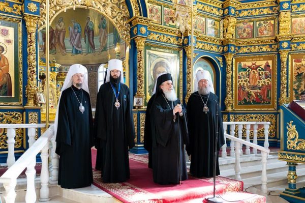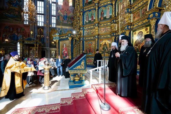 Πατριάρχης Ιεροσολύμων-Ιεράρχες του Πατριαρχείου Μόσχας στον Καθεδρικό του Νουρ-Σουλτάν